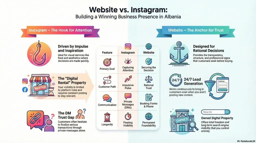Customer behavior in Albania is more structured than it seems at first glance. Instagram is used primarily for inspiration, ideas, and visual comparison, but the moment the real need arises to purchase a service , behavior changes.